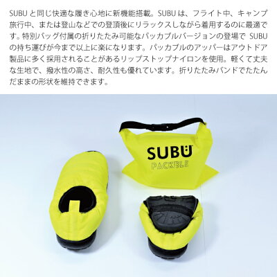 SUBU は、フライト中、キャンプ旅行中、または登山などでの登頂後にリラックスしながら着用するのに最適です。