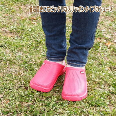 水に濡れてもしみこまないEVA素材だから、雨の日お出掛けや お庭いじりのガーデンシューズとしても活躍してくれます。