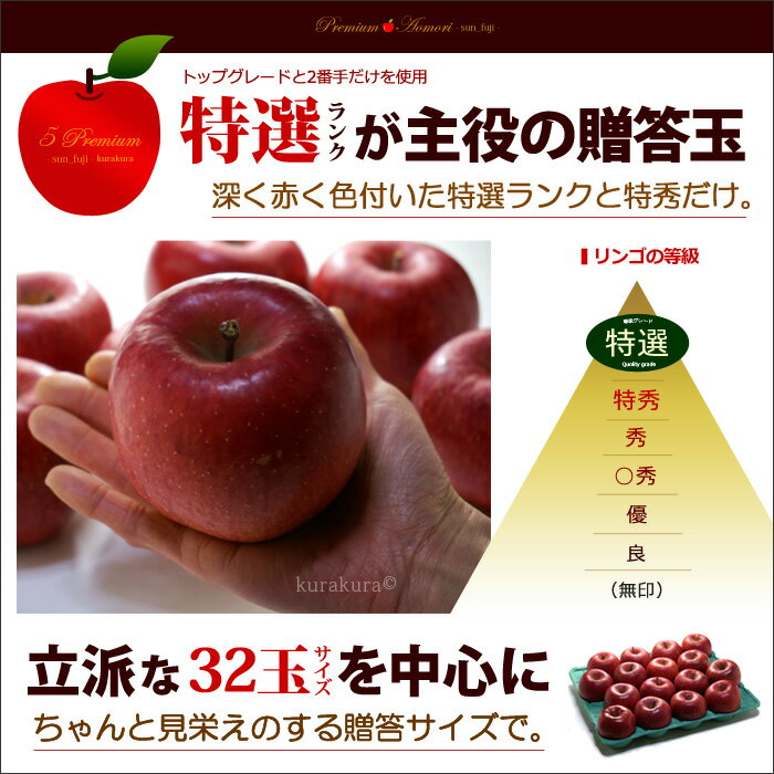 だから「特選」サンふじはうまい!! リンゴギフト選びには、蜜入りと糖度だけでなく、等級ランクも大切です。